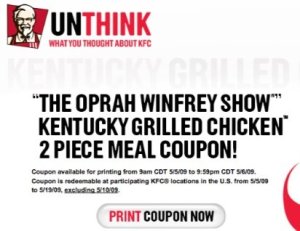 Edit: There are many articles, including this one by Entertainment Weekly about the various protests that have happened across the country as a result of some KFC’s refusal to honor the coupon. Folks are marching like they were told to get to the back of the bus or something. Hot mess. I don’t like to say “I told you so” but…