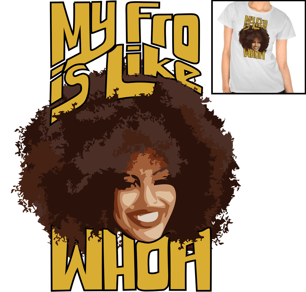 After not making a T-shirt or new swag item in forever, I’ve collaborated with my friend and illustrator Jada Prather to create some new T-shirts fitting of readers of new and old. Because I love hair (and I have a lot of it), the first few shirts are hair-themed, including this one that proudly proclaims one’s ‘fro is “like whoa.” You can get different versions of it right now on Zazzle. So check them out!